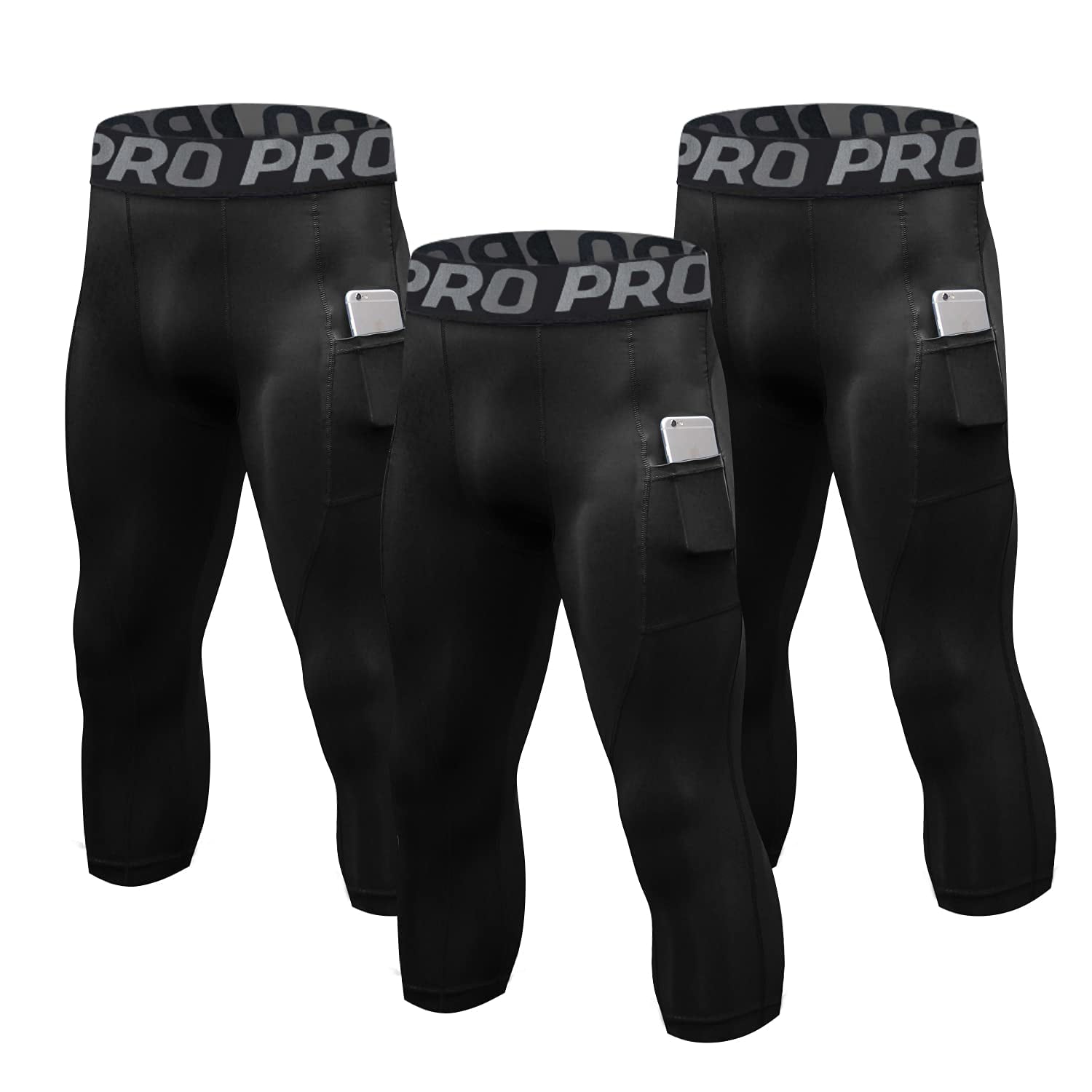 YUSHOW Men's 3/4 Compression Pants, Quick Dry Workout Tights with Pockets, Athletic Leggings for Running, 3-Pack
