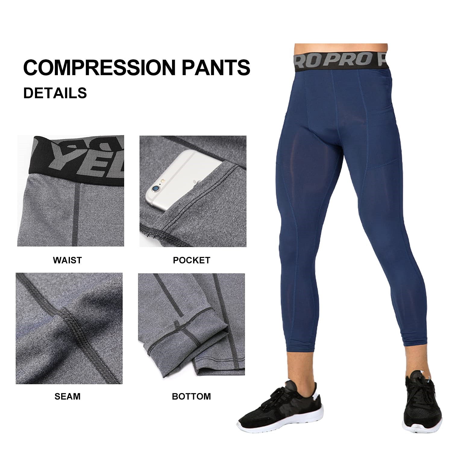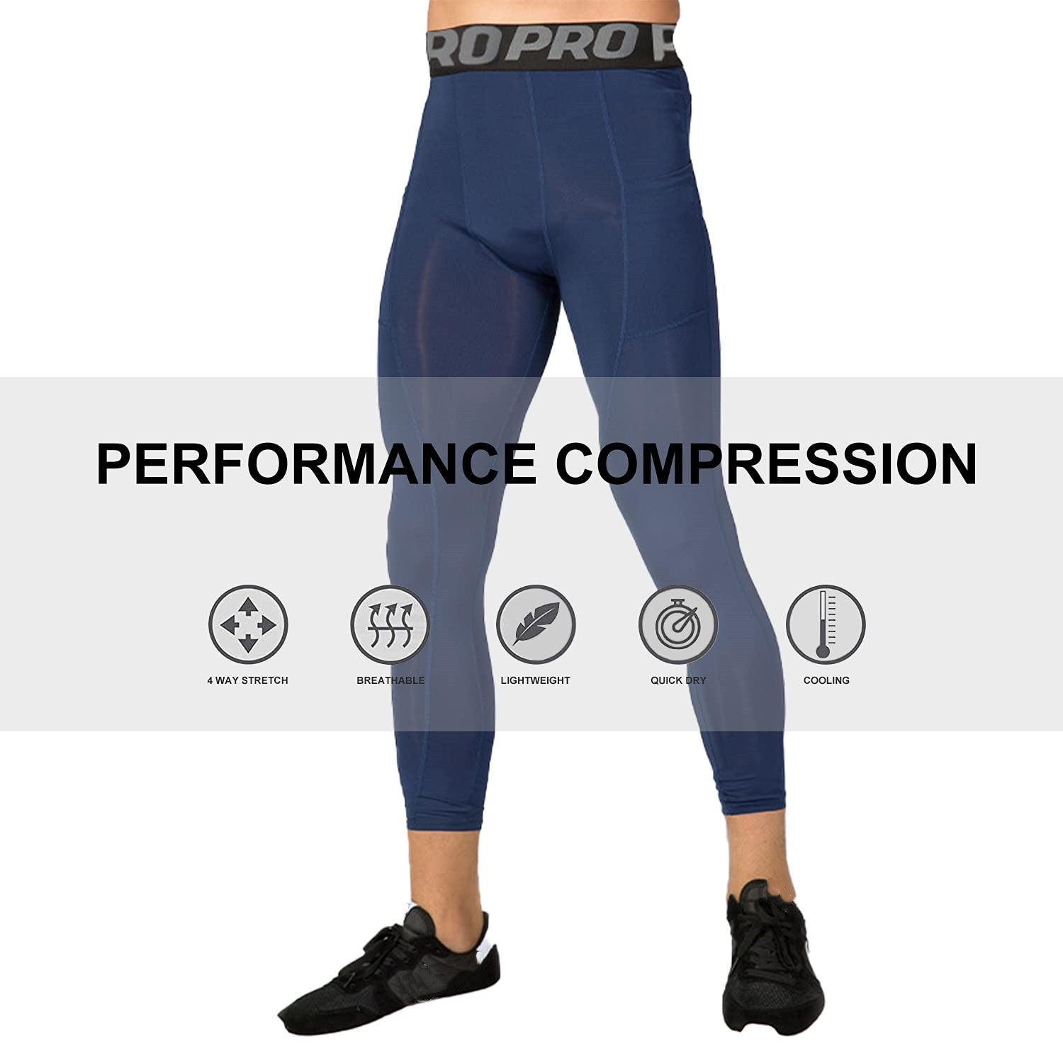 - Stay Dry & Move Freely: Men’s 3/4 compression pants with side pockets offers 4-way stretch for unrestricted movement